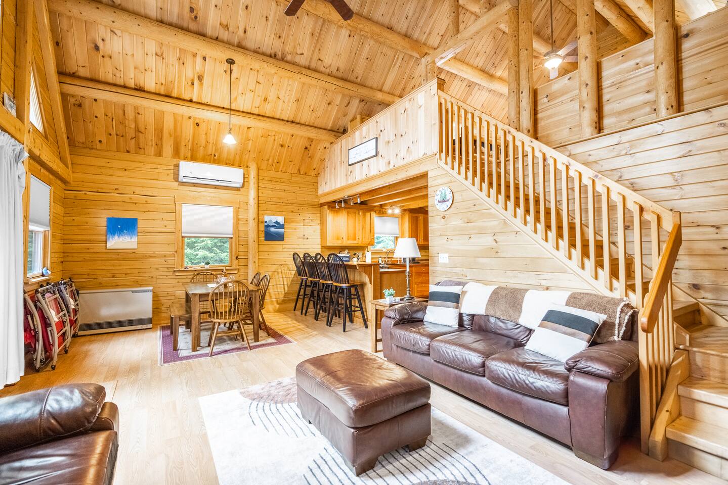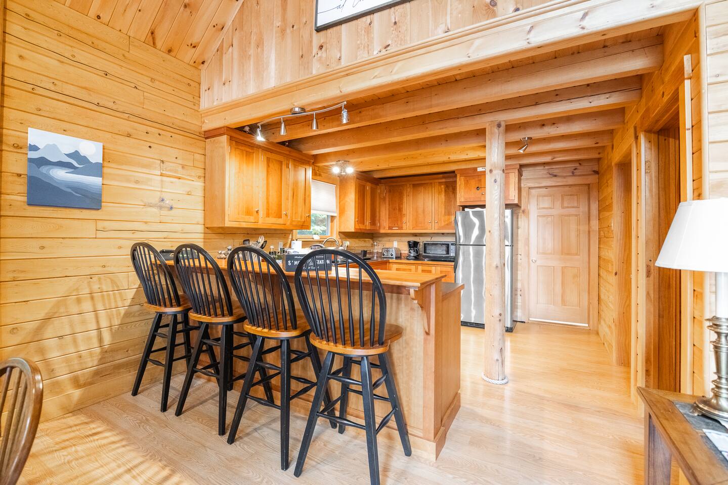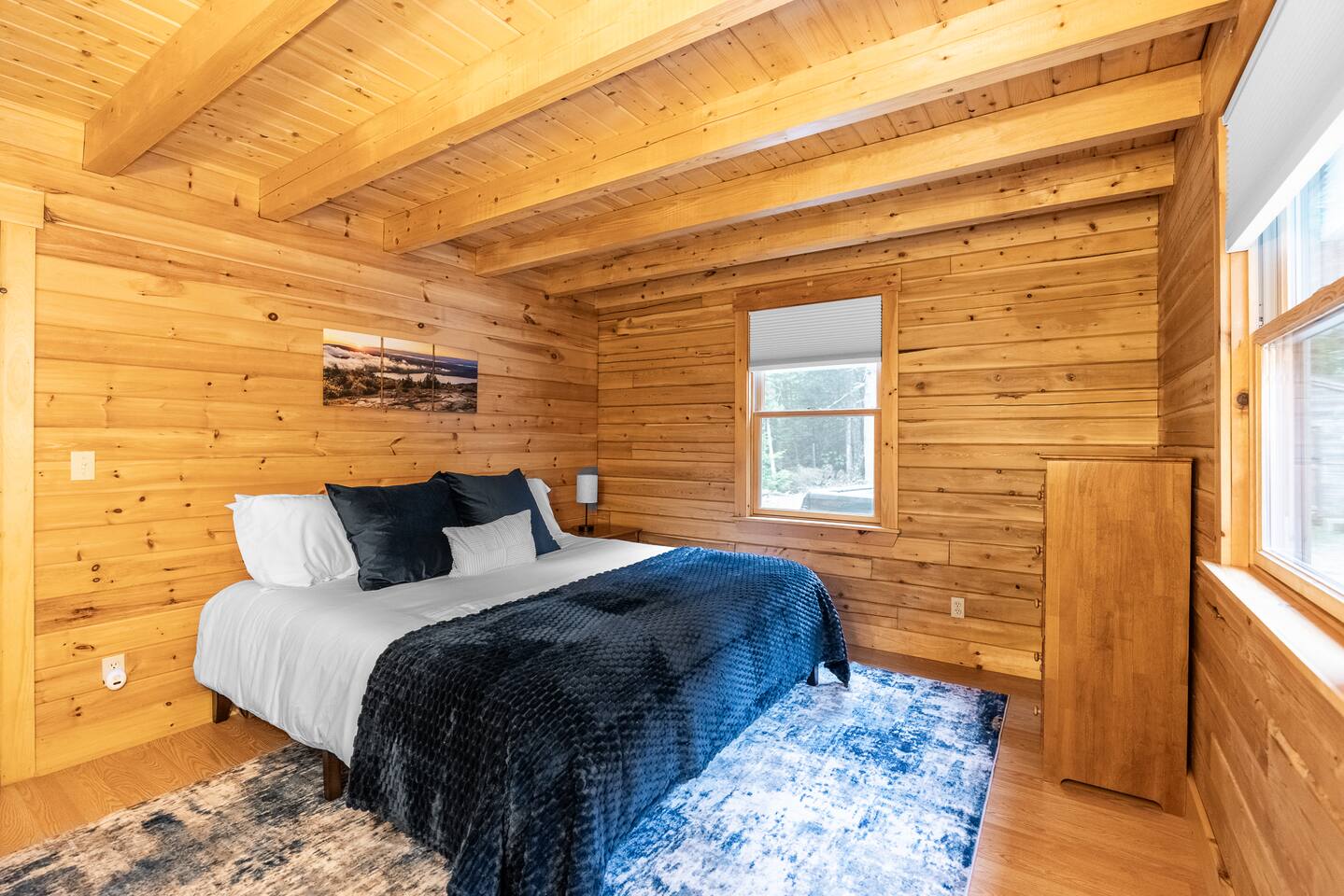 We had a wonderful stay at this beautiful log home in Beddington, Maine. The kitchen was well-appointed, making it easy to prepare meals and enjoy family time. Our hosts were welcoming, and very responsive to any questions and we had. The location was perfect, peaceful and scenic, with the lake just steps away.