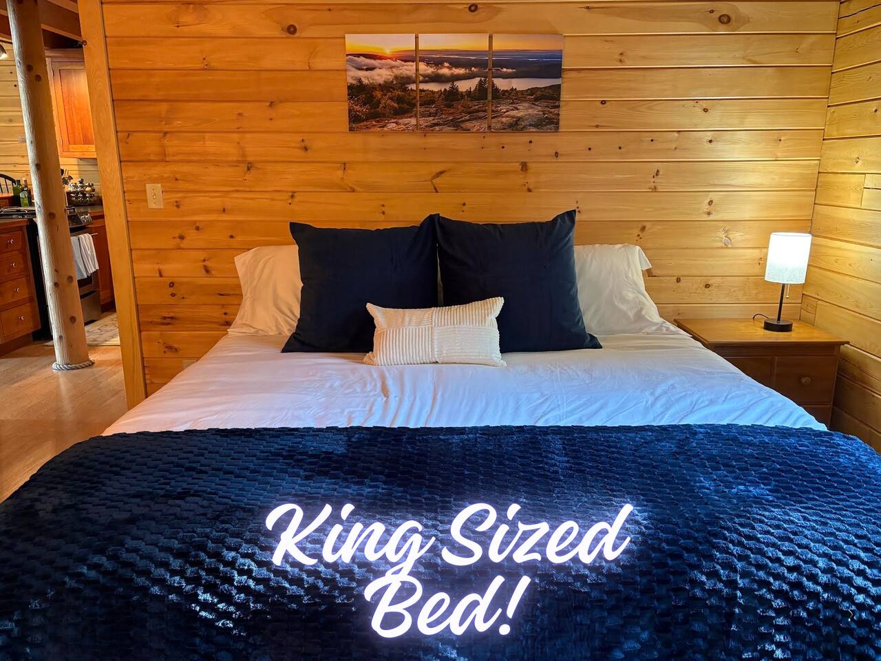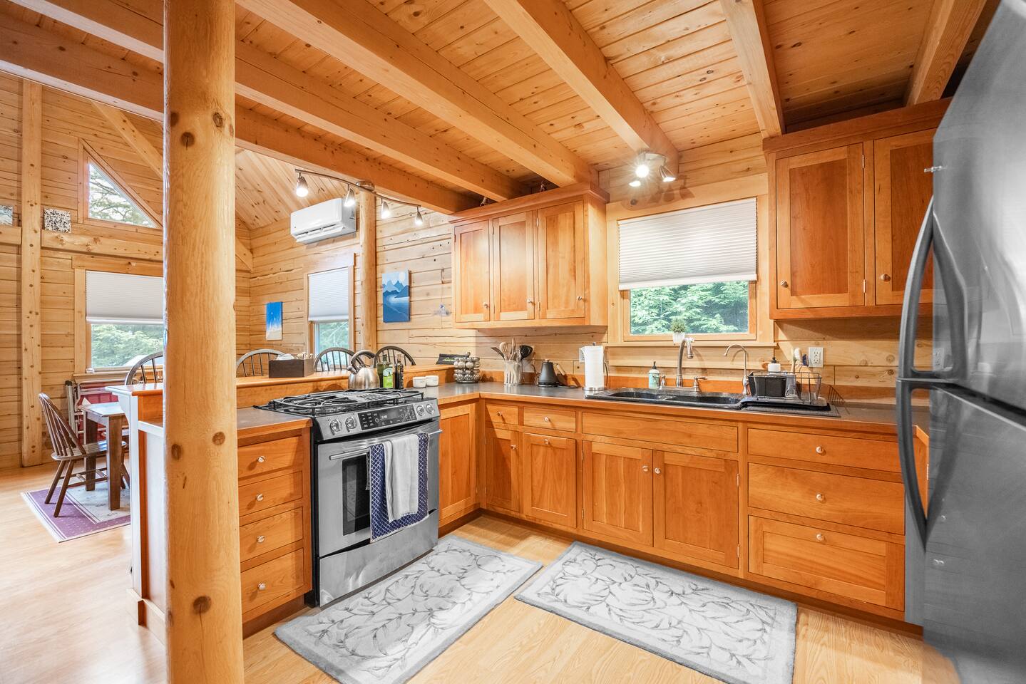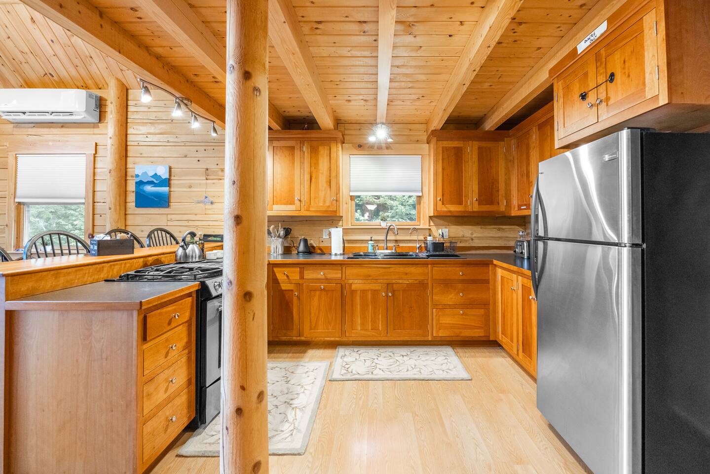 We had a wonderful stay at this beautiful log home in Beddington, Maine. The kitchen was well-appointed, making it easy to prepare meals and enjoy family time. Our hosts were welcoming, and very responsive to any questions and we had. The location was perfect, peaceful and scenic, with the lake just steps away.