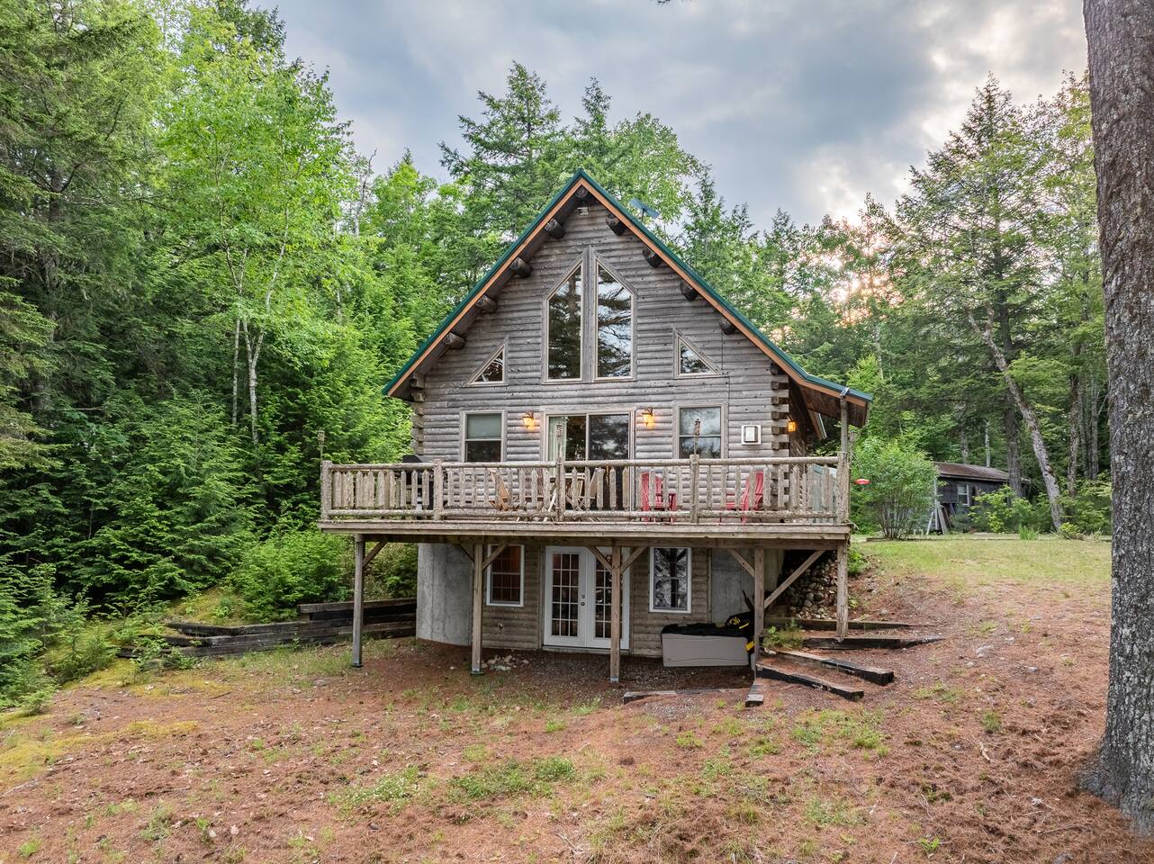 Escape to this charming lakeside Katahdin log cabin, nestled on a large private lot. With 4 bedrooms, 2 baths, and a cozy loft, it offers ample space for relaxation. Step out onto the deck and soak in breathtaking lake views or enjoy access to a private beach, dock, and swim float. Evenings are made for fireside chats and roasting smores around the firepit, making this the perfect retreat for families or groups seeking tranquility and adventure.