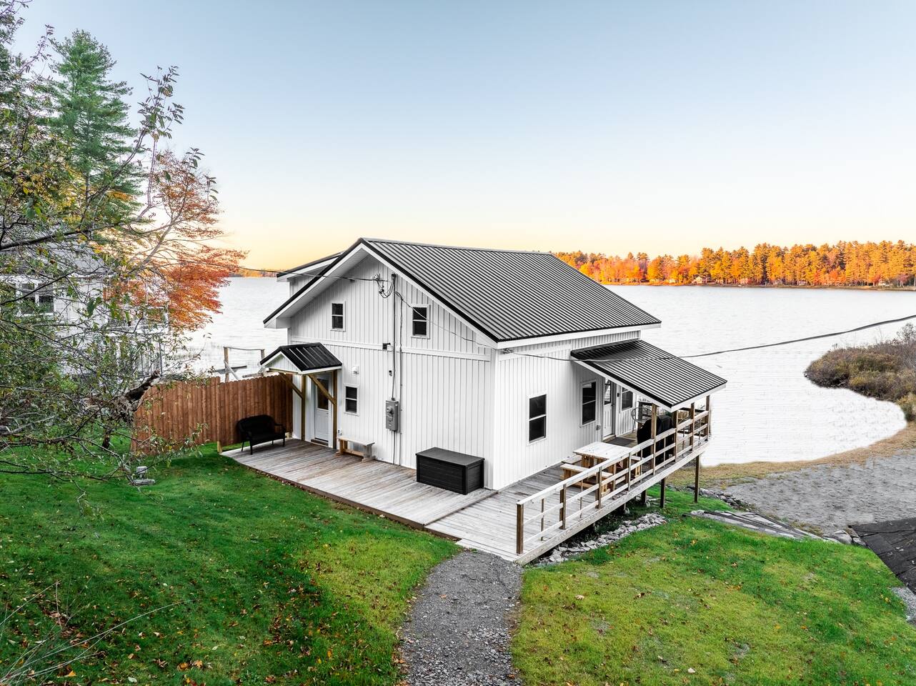 Nestled along the picturesque shores of Maine, this newly redesigned rustic contemporary waterfront cabin offers a perfect blend of modern comfort and natural charm. Featuring sleek lines and natural wood accents, the cabin exudes warmth and sophistication. Expansive windows provide stunning views of the private beach and tranquil waters, creating a seamless connection between the indoors and the breathtaking outdoors. Just a short distance from Acadia National Park, this retreat is an ideal haven for nature lovers and adventure seekers alike. The cabin's open-concept living space, cozy fireplace, and spacious deck invite relaxation and leisure, making it the perfect getaway for unforgettable experiences in the heart of nature.